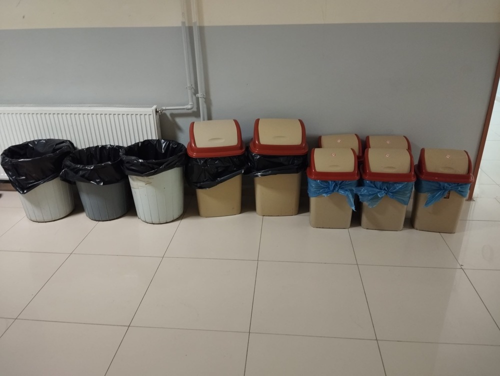 Bu çerçevede, ofislerde ve sınıflarda bulunan masa altı çöp kovalarının kaldırılması işlemleri de Meslek Yüksekokulu'muzda tamamlandı. Artık binamızda atıkların doğru şekilde ayrıştırılması ve geri dönüşüm süreçlerine katkı sağlanması amacıyla yalnızca belirlenen atık ayrıştırma kutuları kullanılacak.